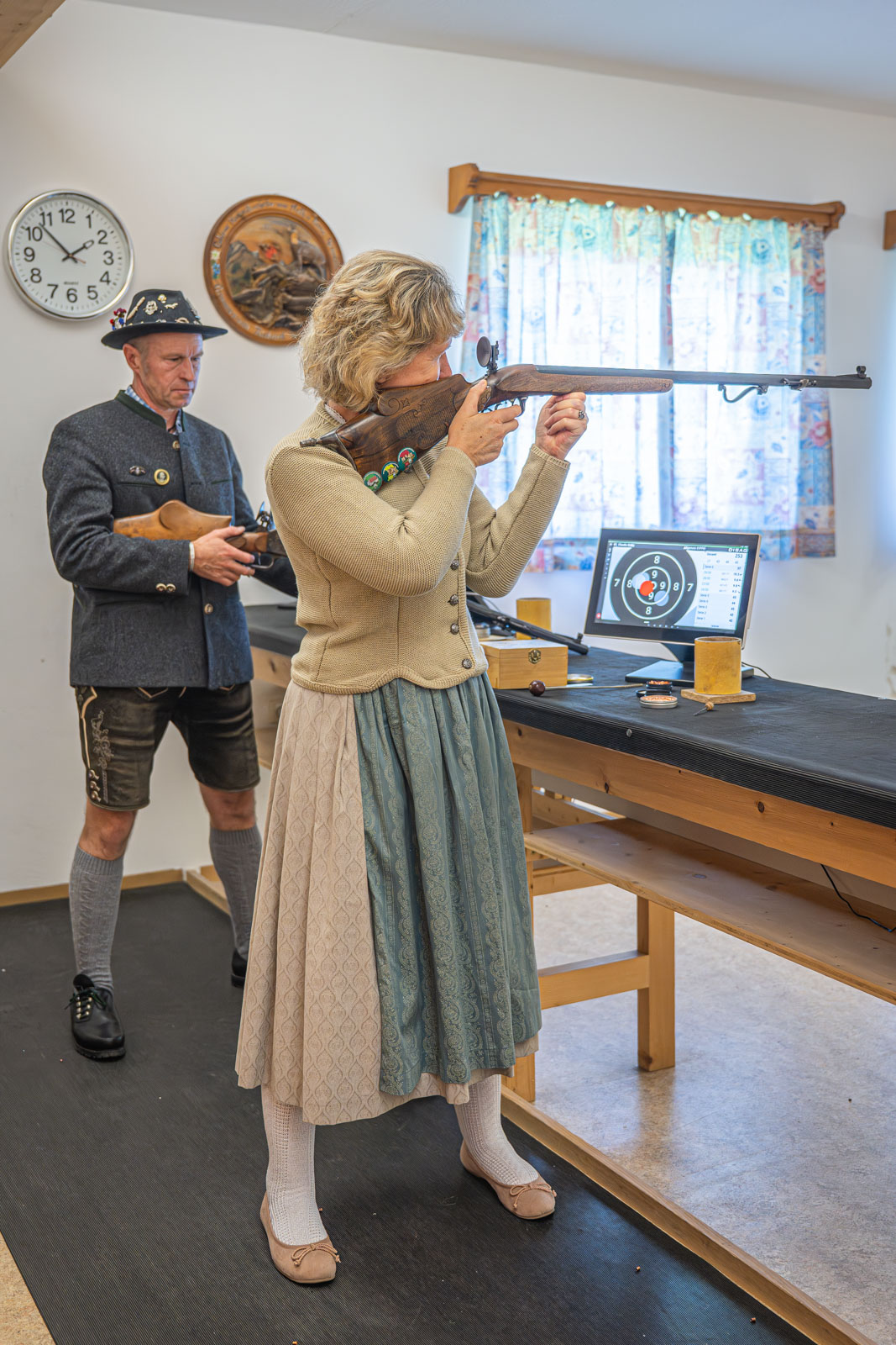 Diese Tradition zielt darauf ab, das historische Schützenwesen zu bewahren, und ist durch den Einsatz traditioneller Kleidung (Tracht, Männer mit Hut) und eine besondere Atmosphäre gekennzeichnet. Spezielle Schießkleidung wie Jacken und Schuhe oder Handschuhe sind nicht erlaubt.